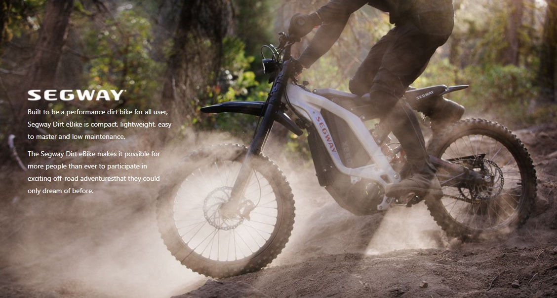 Segway Dirt eBike is built with a sturdy lightweight aluminum alloy frame refined with premium design. Different from most traditional dirt bikes, Segway Dirt eBike weighs only 121.3 lbs. Being lightweight, it is made to accompany fearless riders to power through more tough terrains unknown.