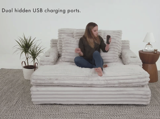 Autumn Sale - Nestle Chaise Lounge With Dual Cupholders And Charging Ports