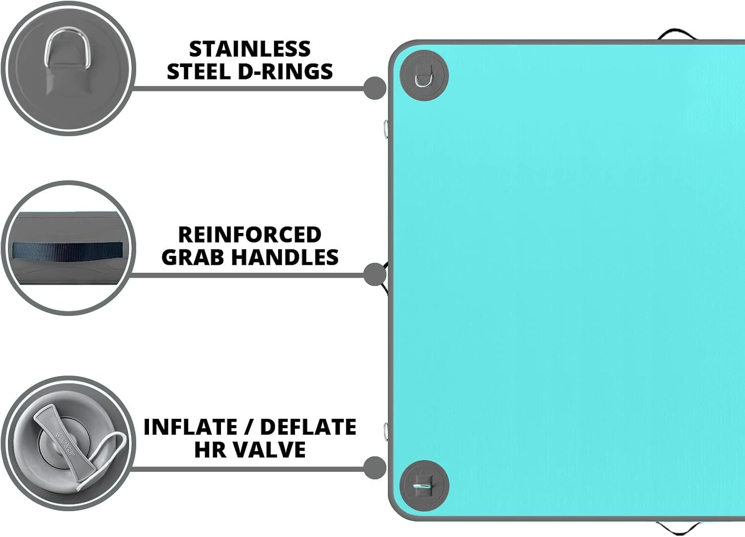 - Secure & Modular Stability: Equipped with corrosion-resistant D-rings and a 10-foot nylon rope, the AWSUM inflatable floating dock anchors securely to boats, docks, or anchors. Connect multiple docks or attach water toys to create a versatile water playground for parties or family gatherings.