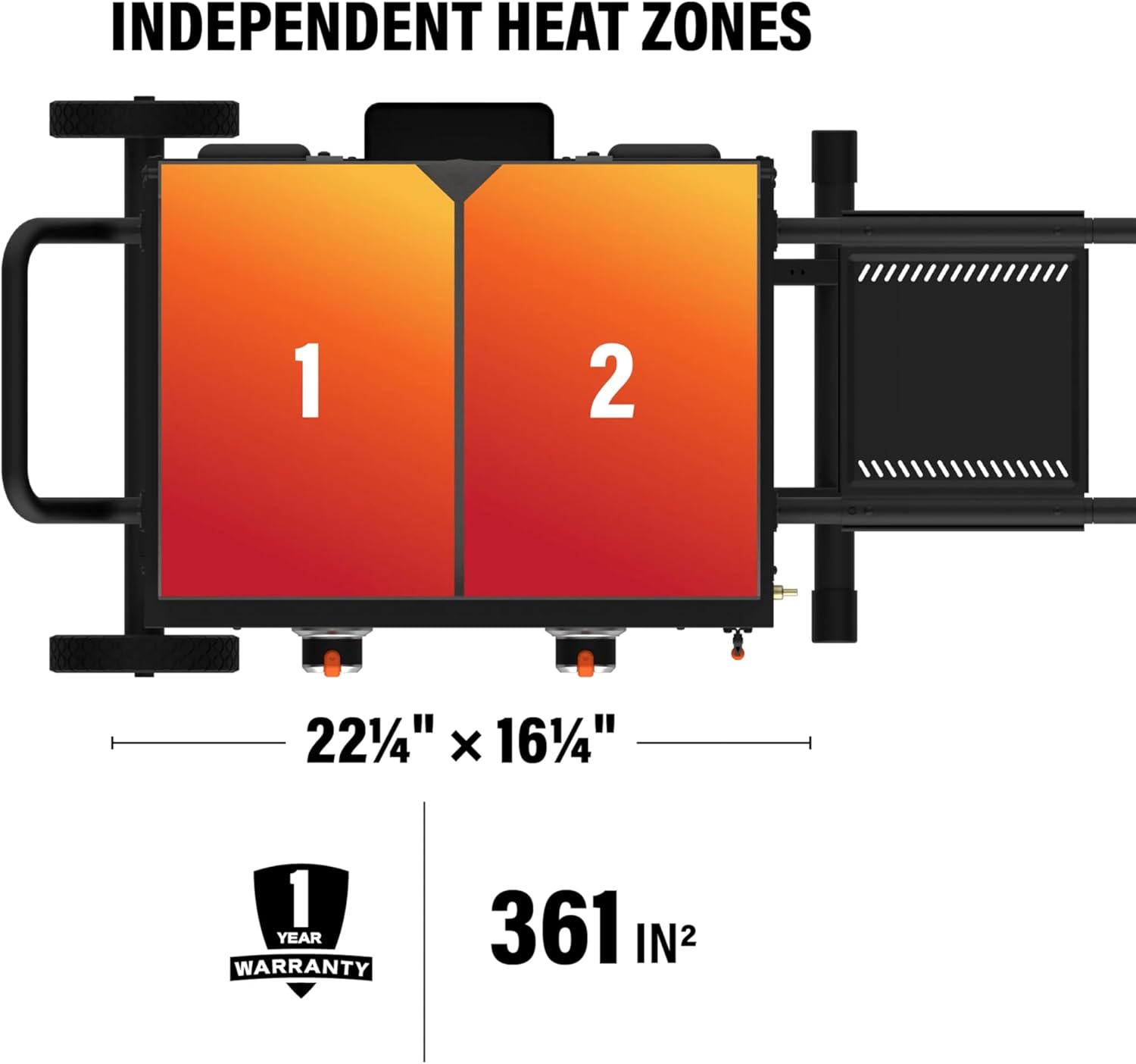 - Two Independently Controlled Cooking Zones - This portable Blackstone grill is crafted to elevate your cooking experience. It boasts two separate cooking zones that allow you to effortlessly prepare a variety of dishes simultaneously.
