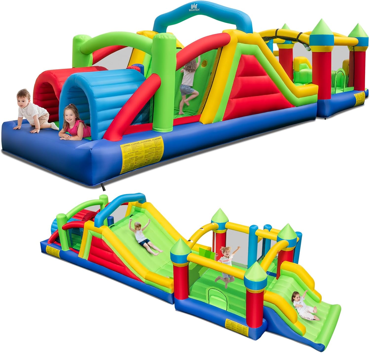 Inflatable Obstacle Course Bounce House, Kids Huge Sectional Bouncy Castle with Dual Slides, Tunnels, Bounce Area, Climbing, Obstacles, Playhouse for Kids Indoor Outdoor Birthday Party Gift