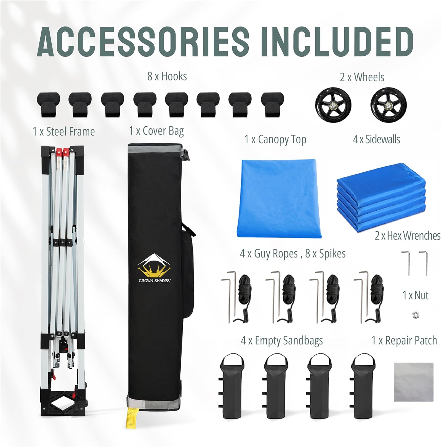 - [STO'N Go Bag]: Transporting and storing camping gear has never been easier than with the newly designed patented STO'N Go Bag. It comes equipped with a specialized pocket designed to hold 8 stakes, 4 guy ropes, and 4 removable wall panels. With its compact size, it can fit comfortably in most vehicles, so you can take your canopy with you wherever you go.
