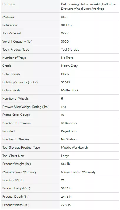 When you buy a Heavy-Duty 72 in. W 18-Drawer, Deep Tool Chest Mobile Workbench in Matte Black with Adjustable-Height Hardwood Top online from Our Store, we make it as easy as possible for you to find out when your product will be delivered.If you have any questions about your purchase or any other product for sale, our customer service representatives are available to help.Whether you just want to buy a or shop for your entire home, Our Store has a zillion things home.