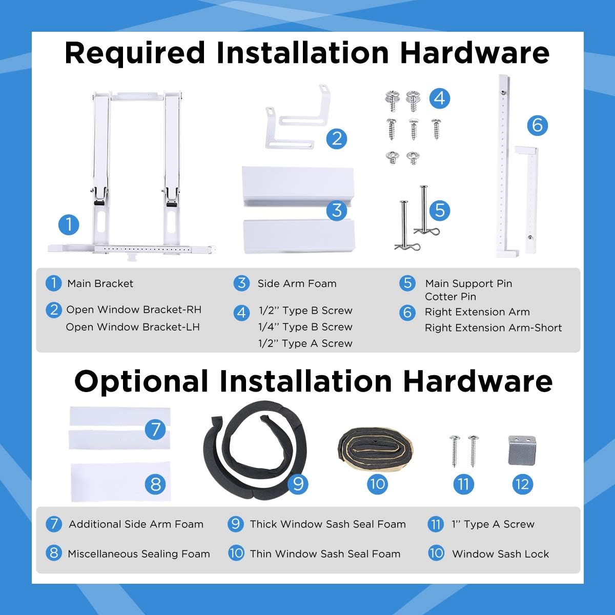 - ROBUST INSTALLATION - Install the included quick-snap bracket, set the air conditioner on the bracket, and secure the sidearms. Then you are all done and ready to enjoy. Available for single-hung or double-hung windows with width 22"-36", minimal height at 13.75".