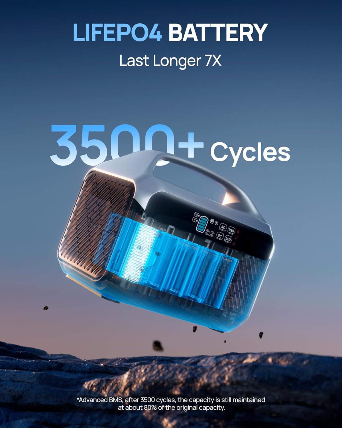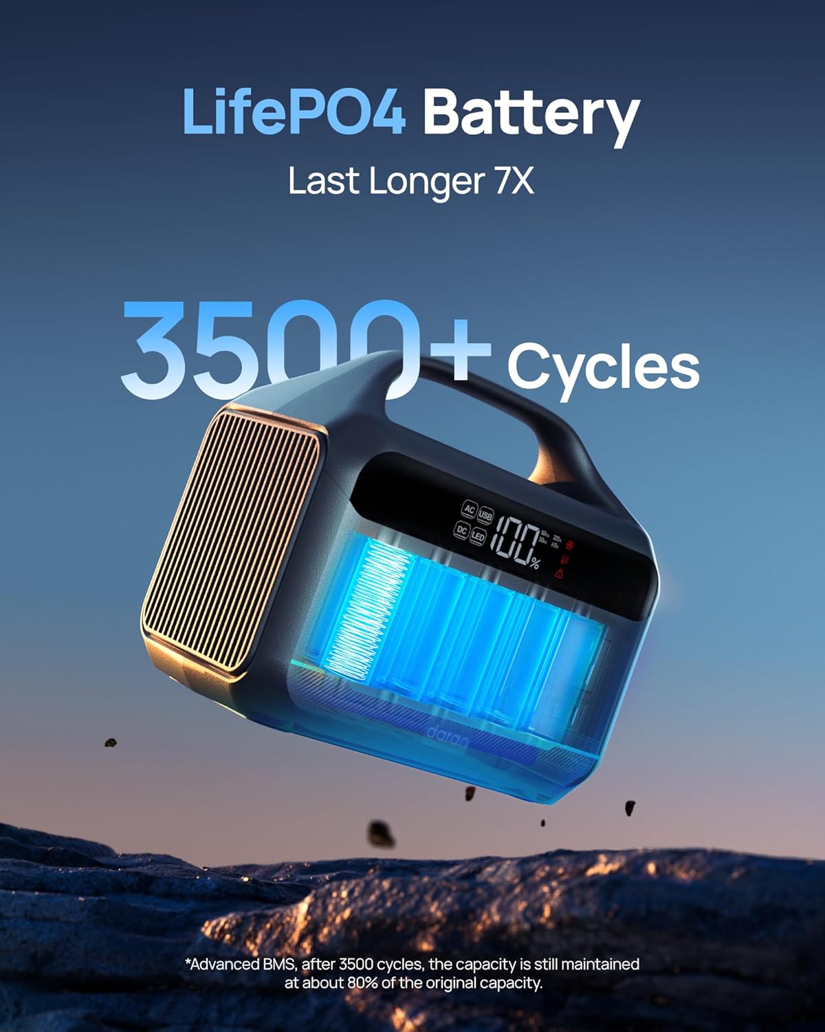 - ��Safe & Durable��LiFePO4 is completely different from the NCM(Nickel-cobalt-manganese) lithium batteries, with 12 safety features. It can be used and charged more than 3500 times, while the advanced BMS protection function can monitor voltage, current, and temperature, so that your power station can last a long time
