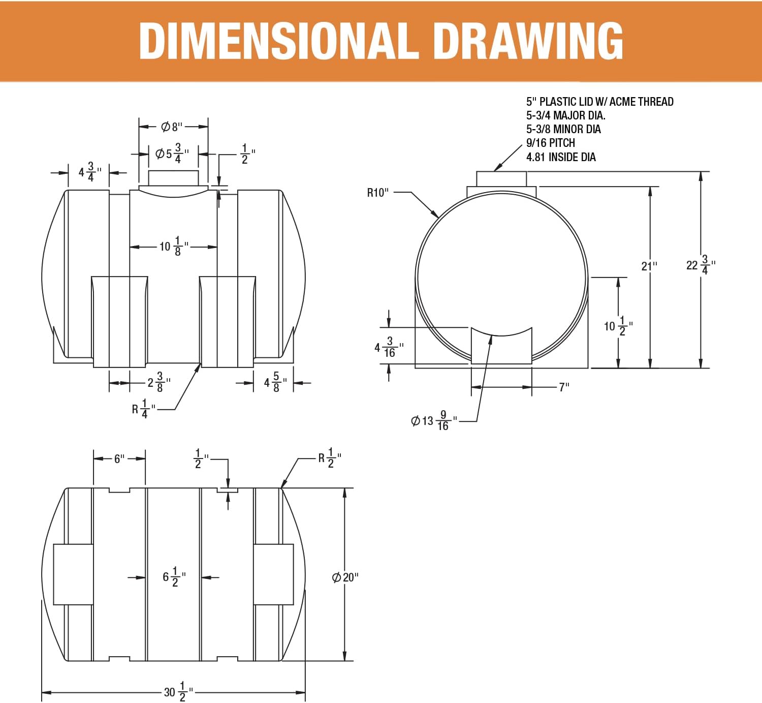 Horizontal Polyethylene Reservoir Water Tank with Legs, 550 Gallon, Made in the USA, Poly Tank for Water and Non-Flammable Liquids, Rust and Corrosion Proof