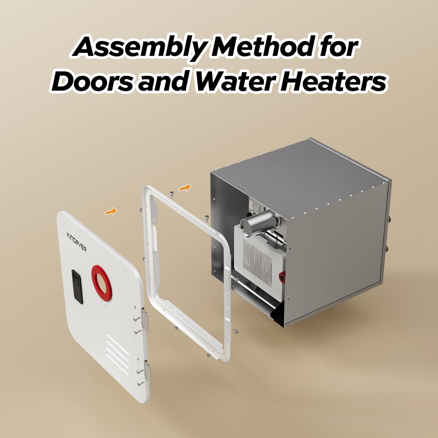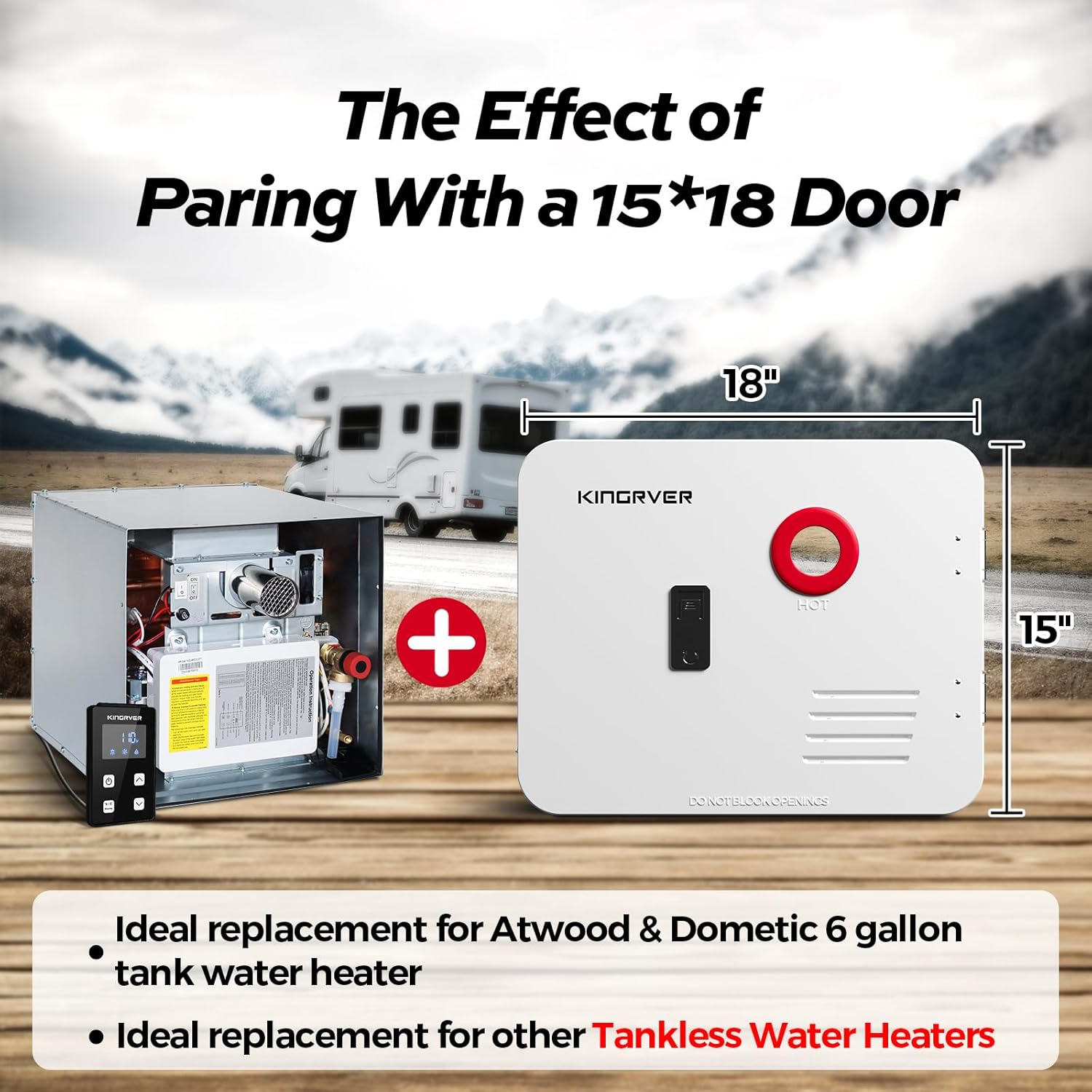 - Compatible with All RVs �� The KINGRVER RV tankless water heater opening size is 12.7" x 12.7". The fitting door kit is available for purchase in 3 optional sizes: 15" x 15", 15" x 18", or 18" x 18". It is easy to replace Suburban, Dometic, and other RV tank/tankless water heater. We also offer customizable EVA Filling Blocks to fit oversized cutouts, ensuring stability and preventing movement of the water heater. They are waterproof and corrosion-resistant. Check our bundles for combination purchase options for easier refitment.