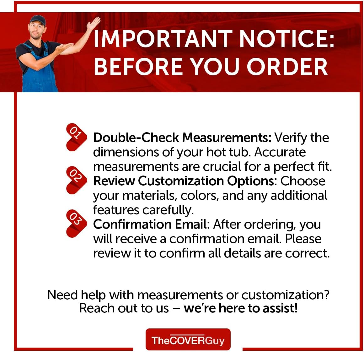 - #1 ORIGINAL + BEST HOT TUB COVER: Over 30,000 happy customers every year choose The Cover Guy as the best spa cover to reduce energy bills and eliminate waterlogging. The superior craftsmanship and design of our insulated hot tub cover comes from over 30 years of manufacturing experience.