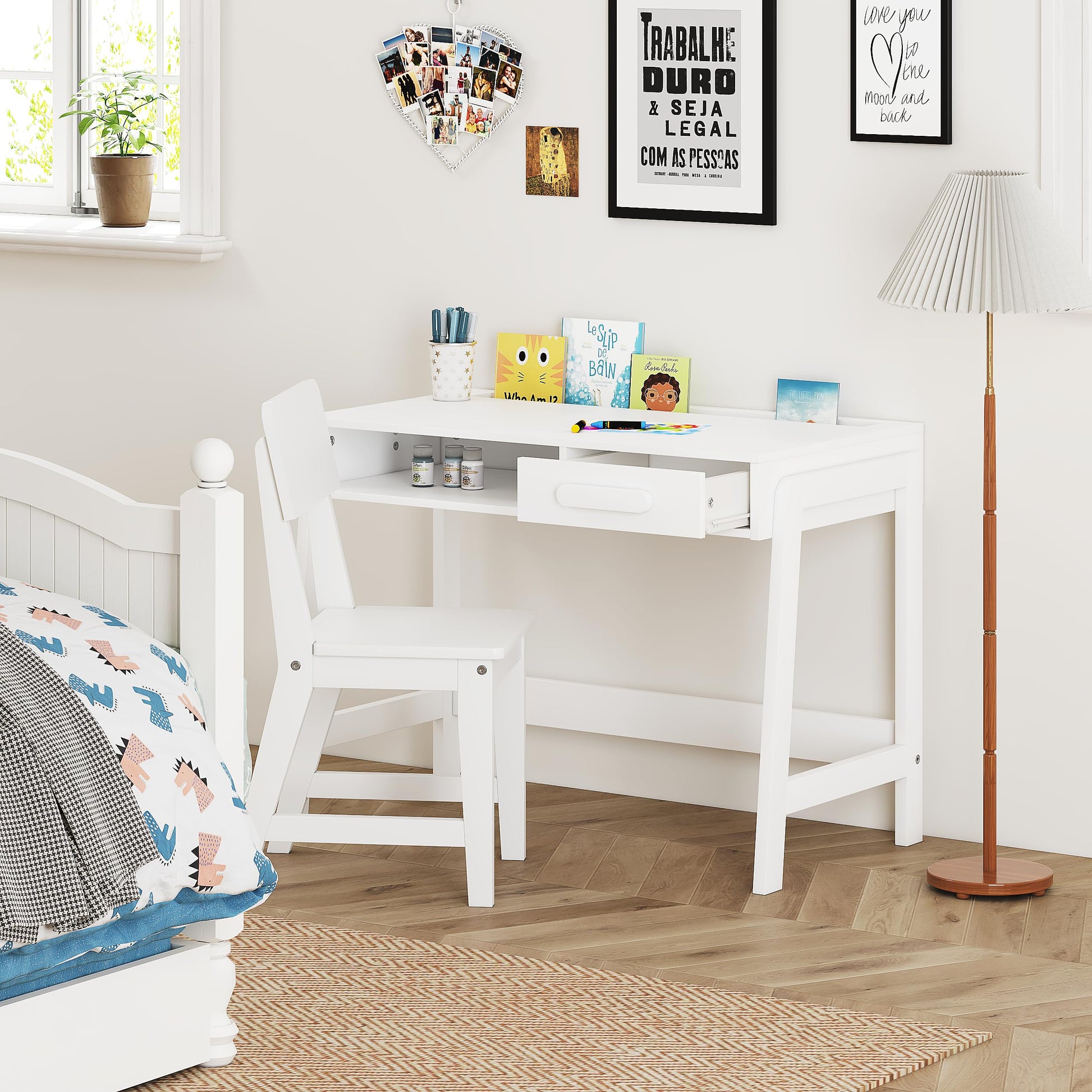 - ��������������������������� ������������������: Our kids desk and chair designed to be both comfortable and as ergonomically correct as possible, Ergonomic chair that has a curved and inclined backrest, Take care of children's spine and joint development,Bring comfortable sitting experience. The overall dimensions of the study table are 33�� x 18.7�� x 28.3�� (L x W x H), and those of the chair are 13�� x 13.8�� x 25.7��, Ideal For for kids aged 3-8 years old.
