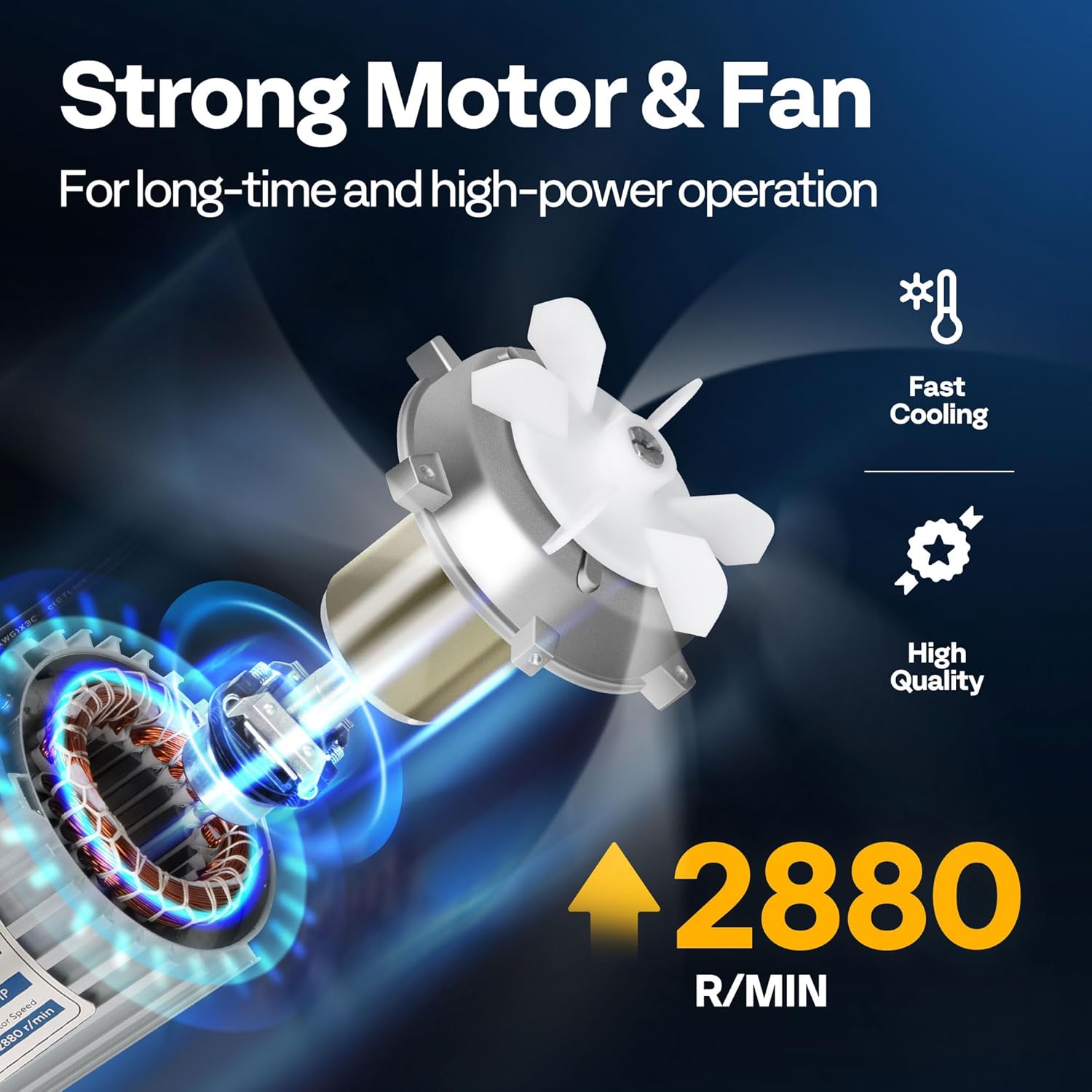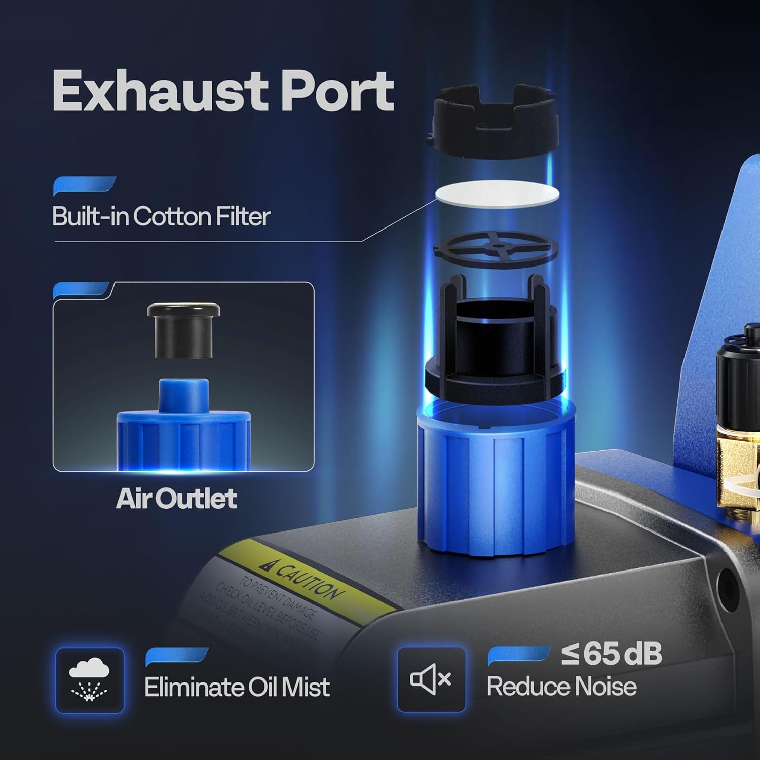 - COMFORTABLE & PORTABLE DESIGN: The ergonomic grip handle provides superior comfort and portability; A built-in high-volume cooling fan ensures extended use; The oil sight glass lets you easily monitor oil levels and quality; An oil drain valve at the bottom enables quick and thorough emptying; Includes a 0.35 qt./330 ml bottle of vacuum oil