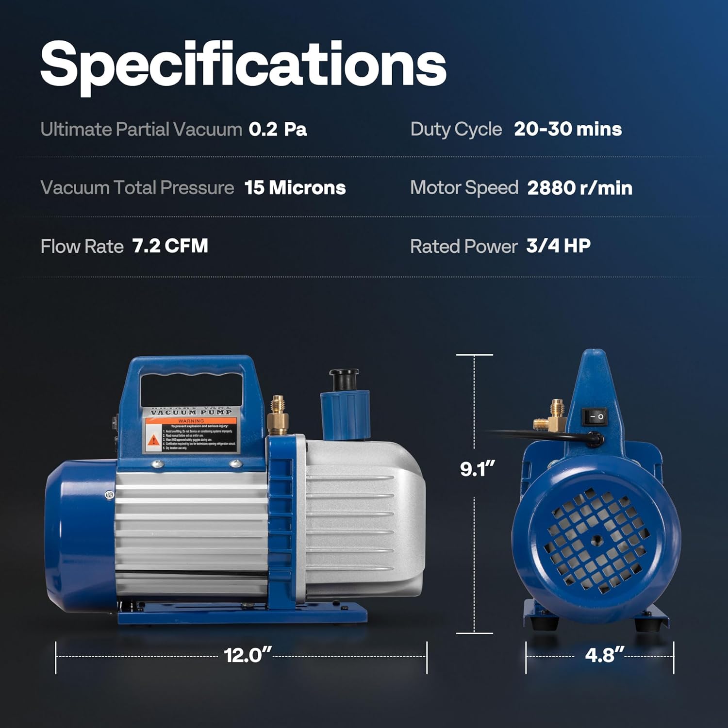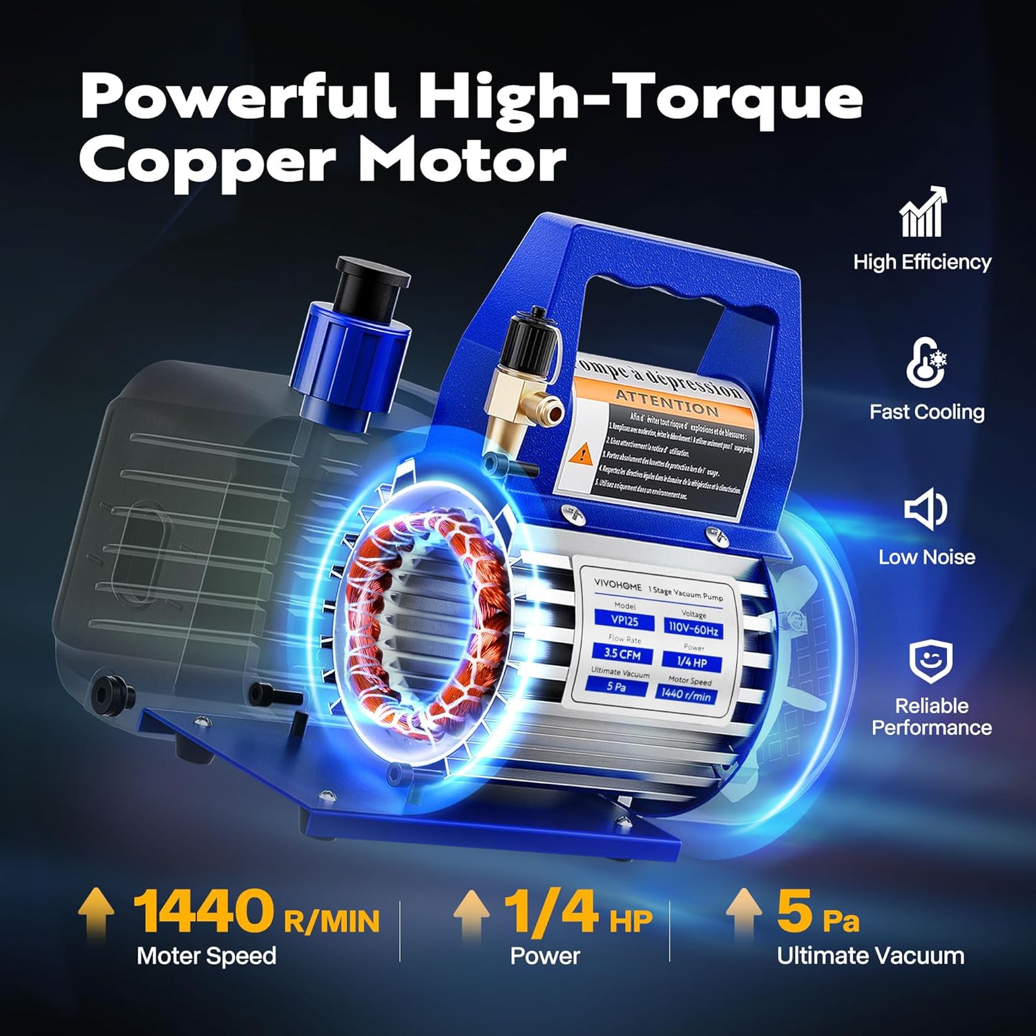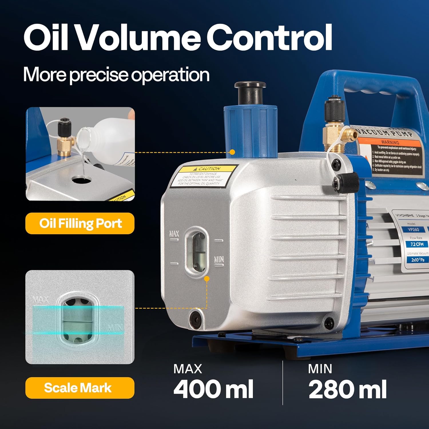- EXCELLENT MAINTENANCE TOOL: The VIVOHOME Vacuum Pump features die-cast aluminum housing and a composite anti-slip rubber base, making it lightweight and durable; Ideal for diagnosing and recharging AC systems on your own; Efficiently removes moisture from air conditioning systems before refilling with refrigerant�