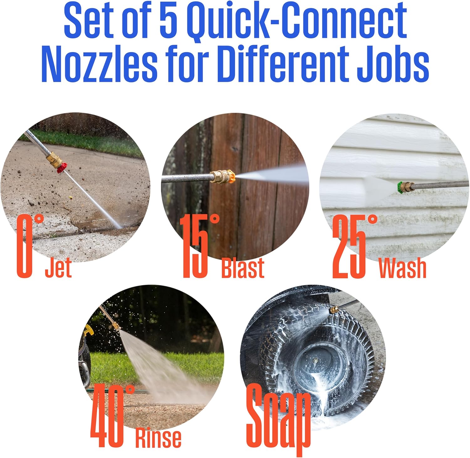 - 25�� Foot Abrasion Resistant Super-Flex Hose With Lightweight High Pressure Spray Gun and 5 Quick Connect Nozzles (0掳, 15掳, 25掳, 40掳 & Soap)
