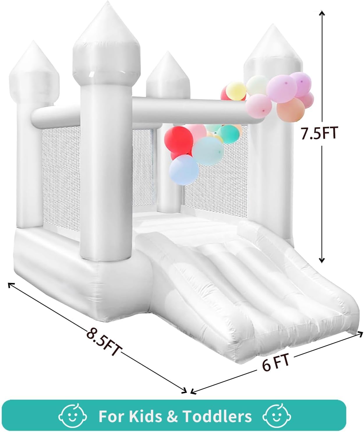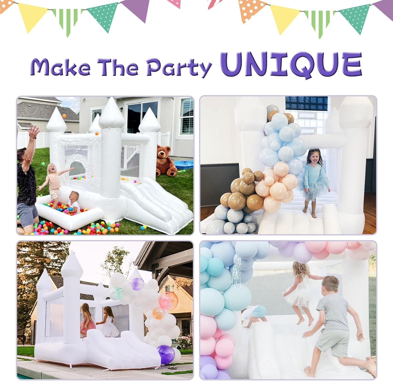 - Family Bond: Our white bounce house is more about creating more opportunities to get along with children. Time to spend time with children is not only a kind of enjoyment, but also an opportunity to build a deep relationship and create good memory. Choose us and spend joy time with your children!