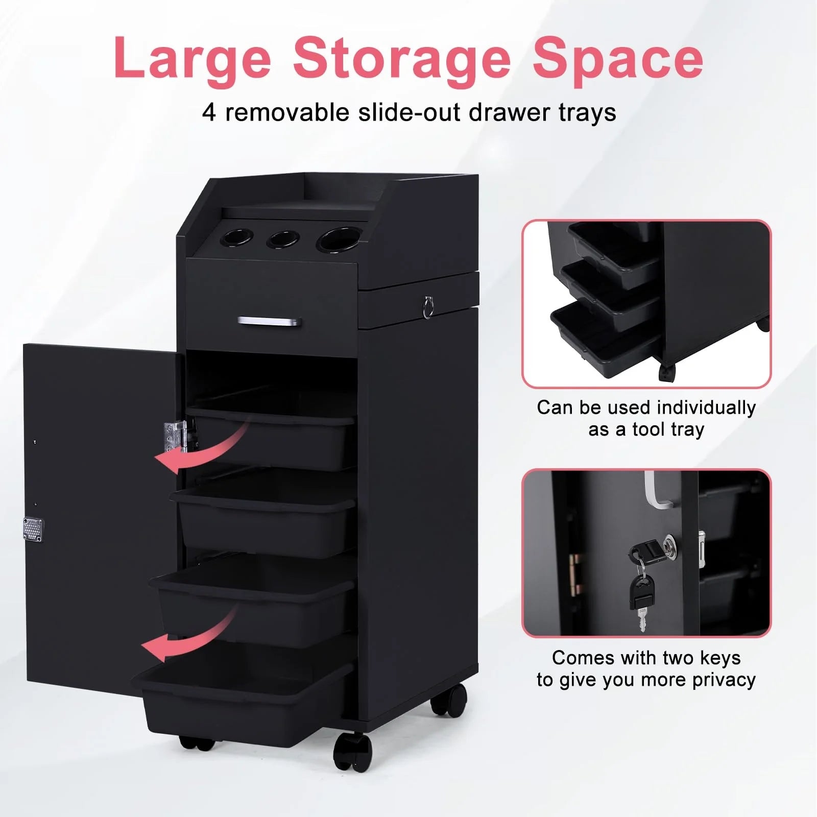 - ��1 Lock with 2 Keys��This salon storage trolley has 2 keys to help you store personal items or keep tools and supplies safe while you're on the go.